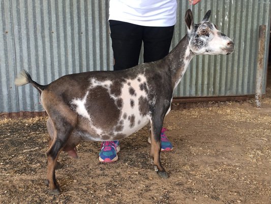 2014 ADGA National Show: 4th Place in 5-6-year-old class, 2nd Place in Dam & Daughter (with 2011 daughter Vieux Carve’), 4th Place in Best 3 Senior Does (with Vieux Carve’ and Sangria)